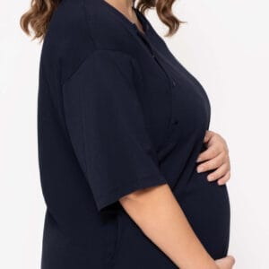Annelik yolculuğunun ilk anlarında, bebeğinle ten tene temas etmeni kolaylaştıran bu %100 pamuk emzirme geceliği, rahatlık ve işlevselliği bir arada sunuyor. Arkadan tam boy çıt çıtlı tasarımı ve güvenli, yuvarlatılmış düğmeli yakasıyla doğum sonrası hastane ve ev kullanımı için idealdir.